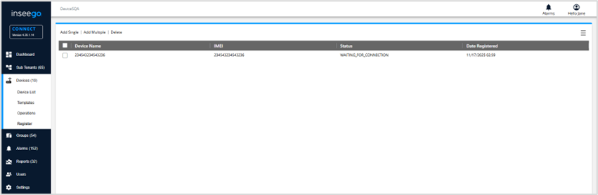 2. Sign in to Inseego Connect and navigate to Devices > Register.
